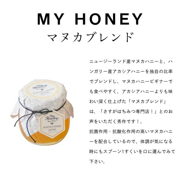 MY HONEY世界の生はちみつを可愛い瓶に詰めました。天然・非加熱で、はちみつパワーをダイレクトに摂れるので効率的にインナーケアをすすめてくれます。