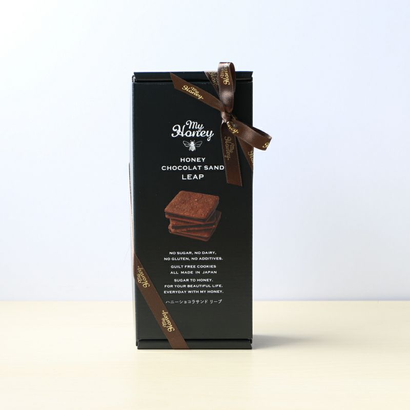 生はちみつとカカオだけで作られたフィリングと、添加物を使わないクッキーサンドの自然な調和をお楽しみください。