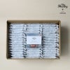 最高級カカオの香りと存在感に溢れる蜂蜜の味を邪魔しないように、クッキーは甘さを控えています。生地に練り込まれたヘーゼルナッツとローストアーモンドの風味が合わさって完成するハニーショコラサンドは、舌で楽しむ芸術作品です。