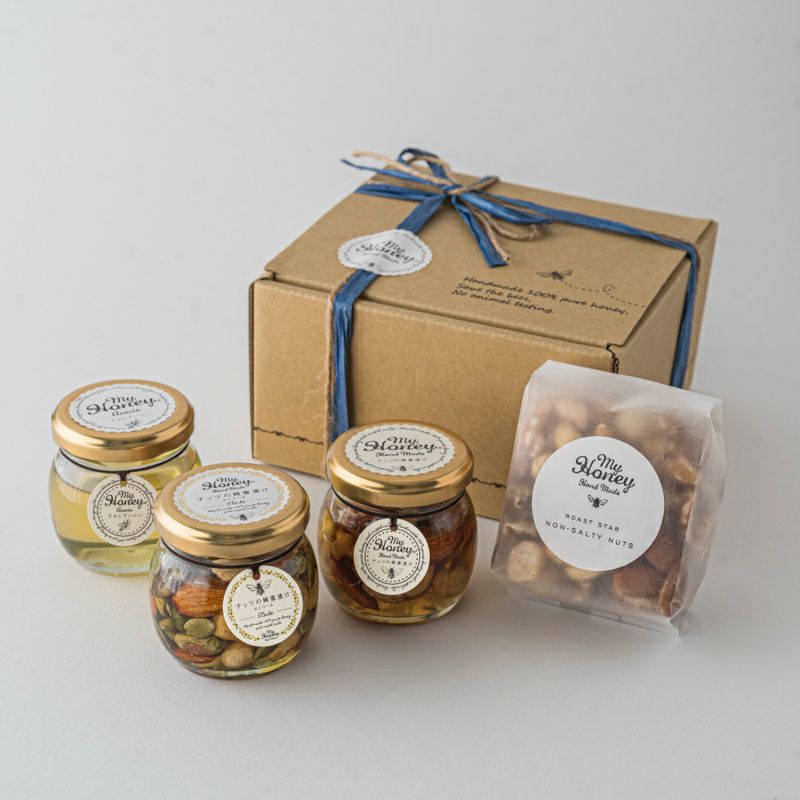 | 賞味期限 | アカシアハニー:製造から2年、ナッツの蜂蜜漬け・エトワール:製造から1年半、ローストナッツ:製造から5ヶ月 |