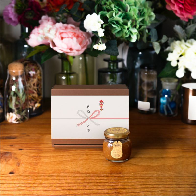 贈り物に最適なMYHONEYの生はちみつギフト ピーナッツハニーM(90g) / ブラウンギフトボックス(S) + 熨斗【当日出荷可能】