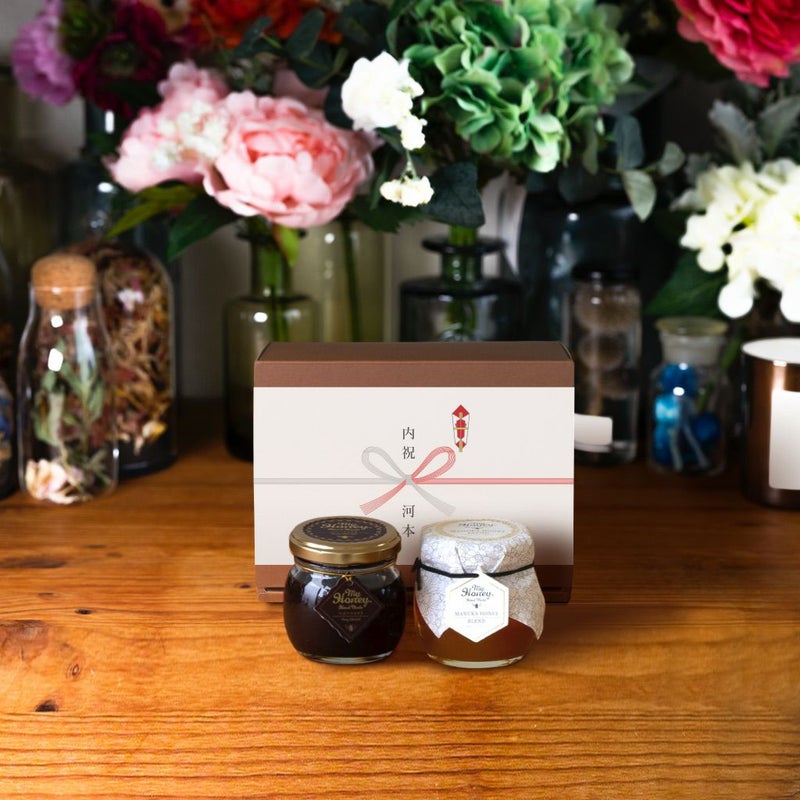 | 原材料 | ハニーショコラM(90g):アカシア蜂蜜(ハンガリー産)、ココアパウダー(オランダ産)、食塩 マヌカハニーブレンド(90g)【MGO30+相当】:蜂蜜(ハンガリー産とニュージーランド産のブレンド) |