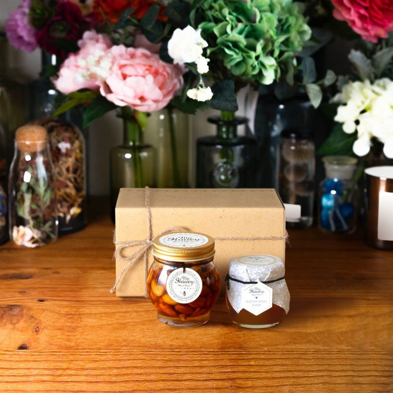 | 賞味期限 | ナッツの蜂蜜漬けL(200g):製造日より1年6ヶ月 マヌカハニーブレンド(90g)【MGO30+相当】:製造日より2年 |