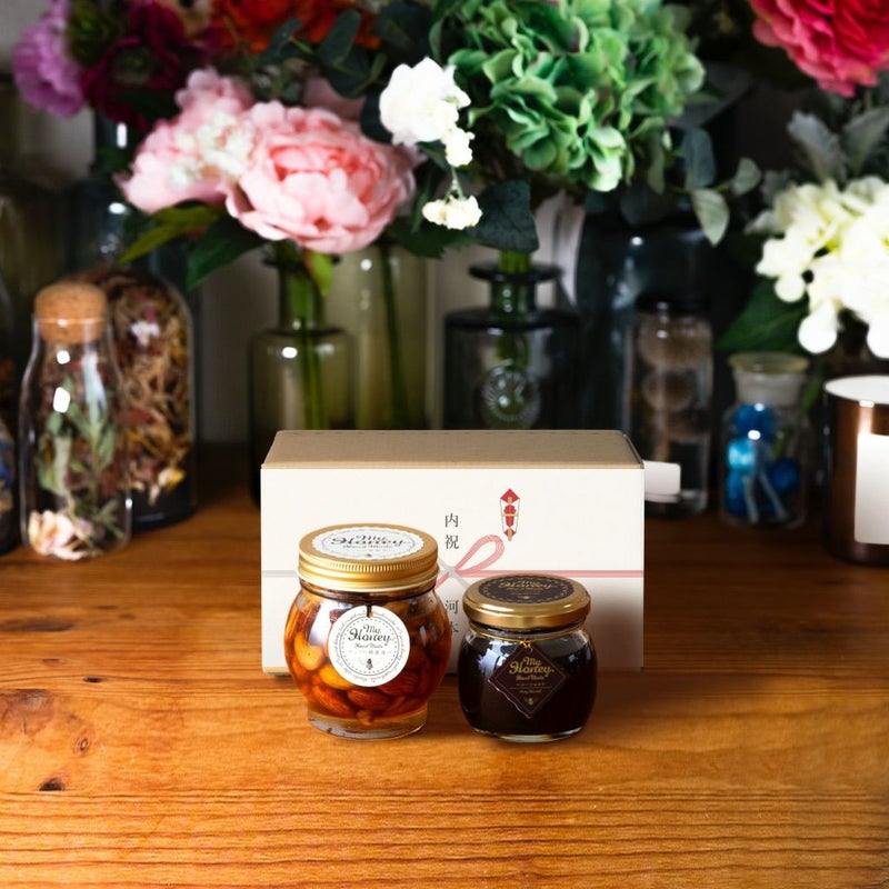 | セット内容 | ナッツの蜂蜜漬けL(200g) + ハニーショコラM(90g) |