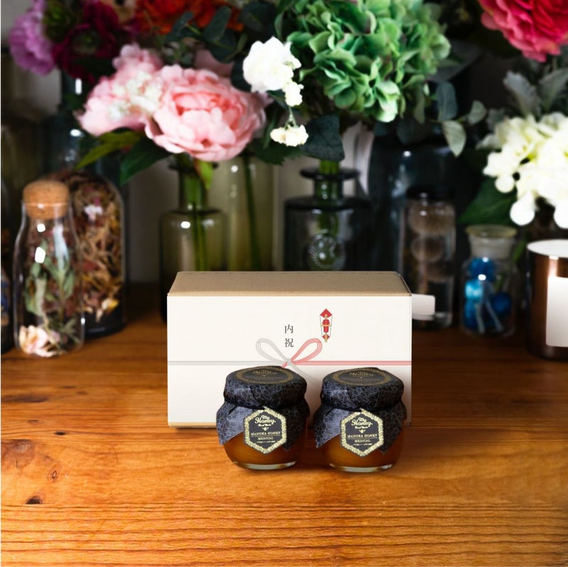 贈り物に最適なMYHONEYの生はちみつギフト マヌカハニー【MGO400+ (UMF13+相当)】(90g)× 2 / ナチュラルクラフトボックス(M) + 熨斗【当日出荷可能】
