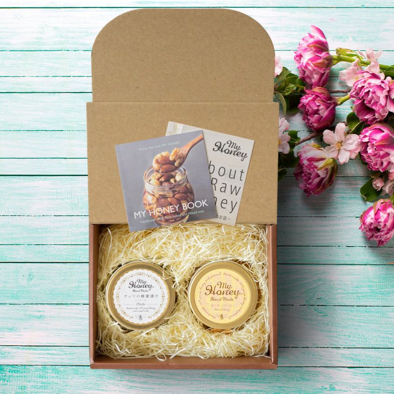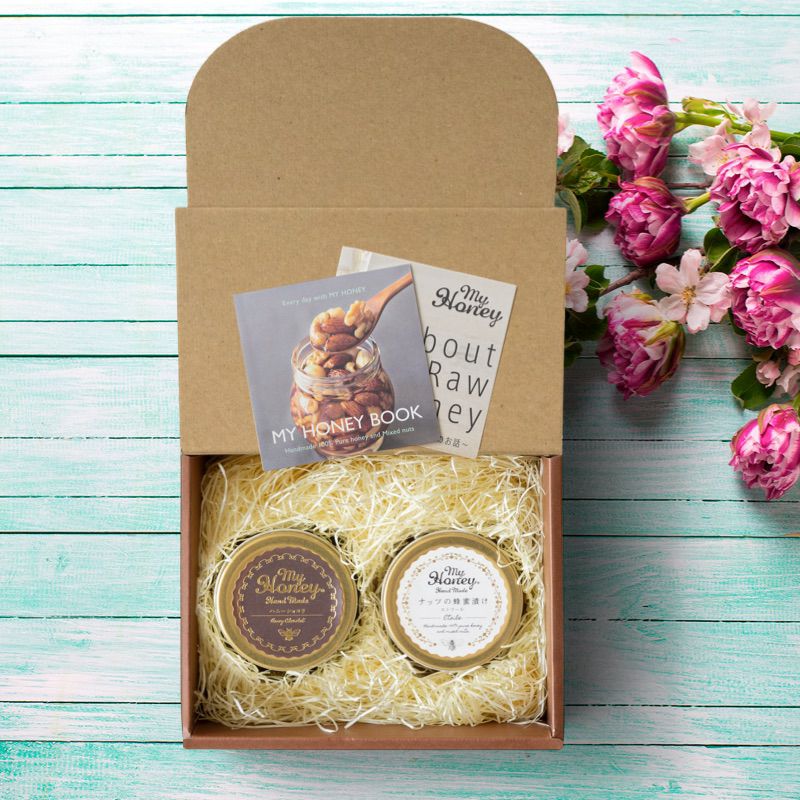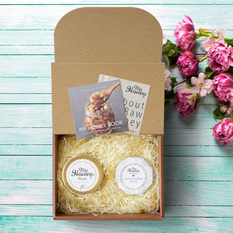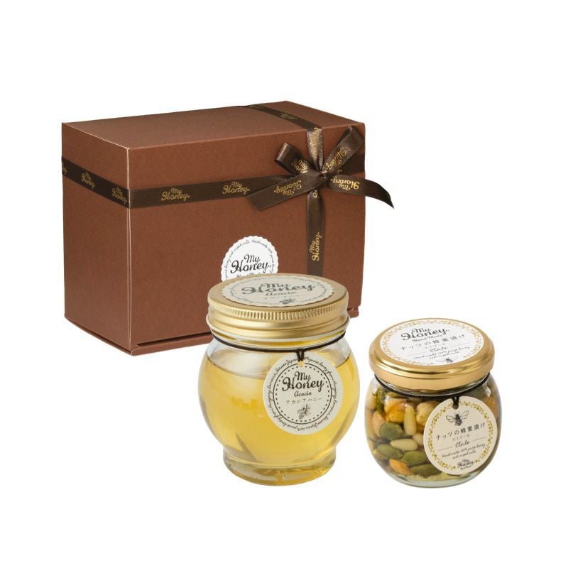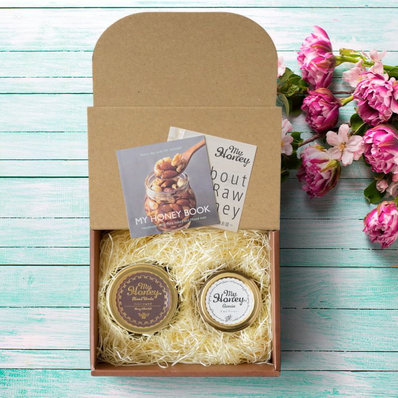 他の画像を見る 贈り物に最適なMYHONEYの生はちみつギフト アカシアハニーL(200g) + ナッツの蜂蜜漬け エトワールM(90g) / ブラウンギフトボックス(S) + MYHONEYロゴ入りリボン【当日出荷可能】 平日12時までのご注文で当日出荷 当店特別価格 ¥ 4,400 税込 詳細を見る お気に入りに登録する