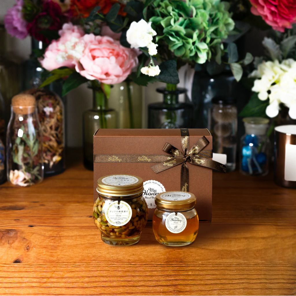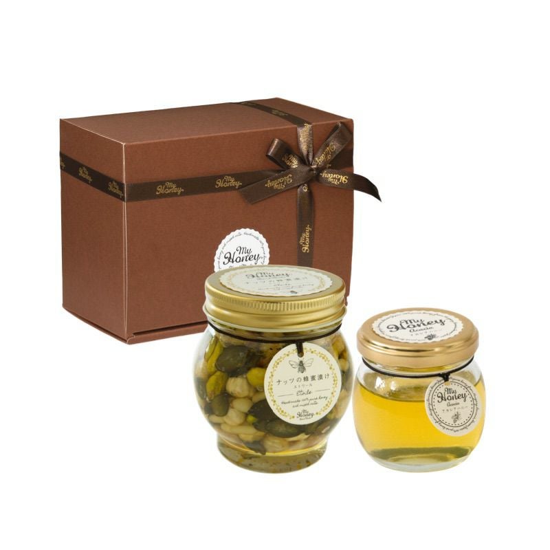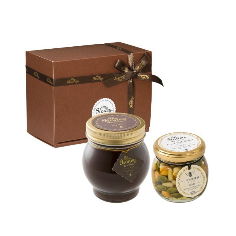 他の画像を見る 贈り物に最適なMYHONEYの生はちみつギフト ナッツの蜂蜜漬け エトワールL(200g) + ピーナッツハニーL(200g) / ブラウンギフトボックス(S) + MYHONEYロゴ入りリボン【当日出荷可能】 平日12時までのご注文で当日出荷 当店特別価格 ¥ 5,690 税込 詳細を見る お気に入りに登録する