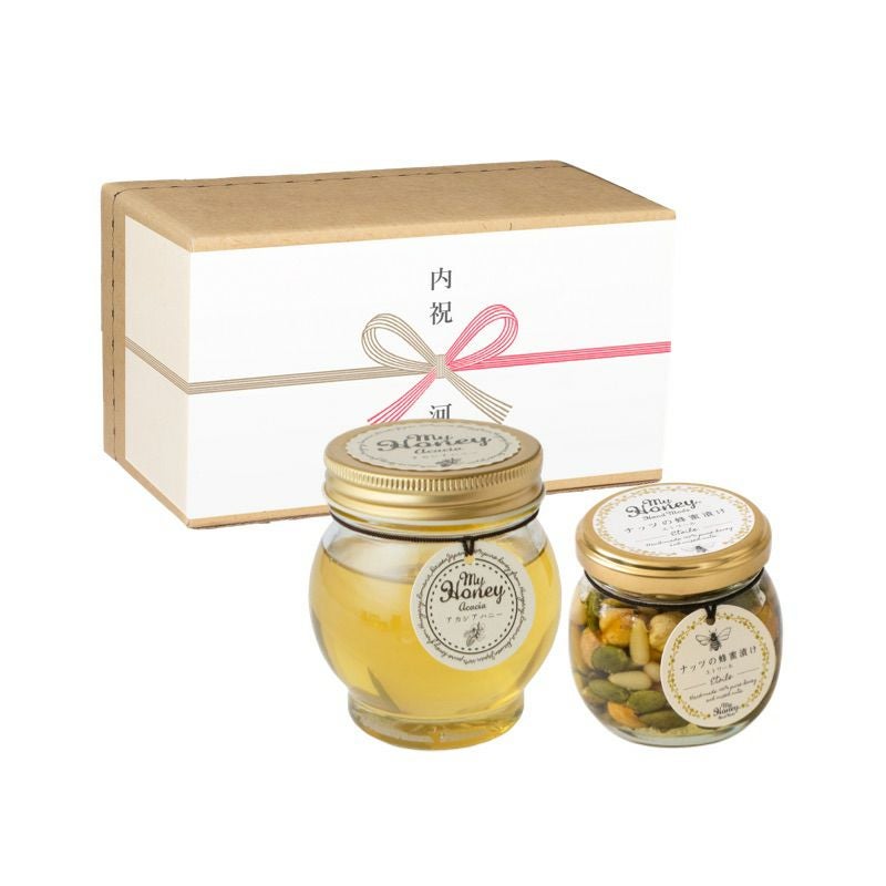 他の画像を見る 贈り物に最適なMYHONEYの生はちみつギフト アカシアハニーL(200g) + ナッツの蜂蜜漬け エトワールL(200g) / ナチュラルクラフトボックス(M) + 熨斗【当日出荷可能】 平日12時までのご注文で当日出荷 当店特別価格 ¥ 5,090 税込 詳細を見る お気に入りに登録する