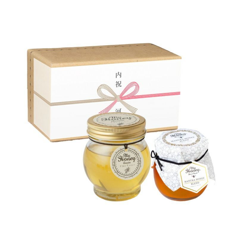 他の画像を見る 贈り物に最適なMYHONEYの生はちみつギフト アカシアハニーL(200g) + マヌカハニーブレンド(200g)【MGO30+相当】 / ナチュラルクラフトボックス(M) + 熨斗【当日出荷可能】 平日12時までのご注文で当日出荷 当店特別価格 ¥ 6,390 税込 詳細を見る お気に入りに登録する