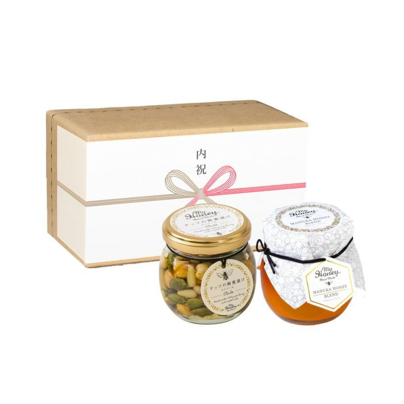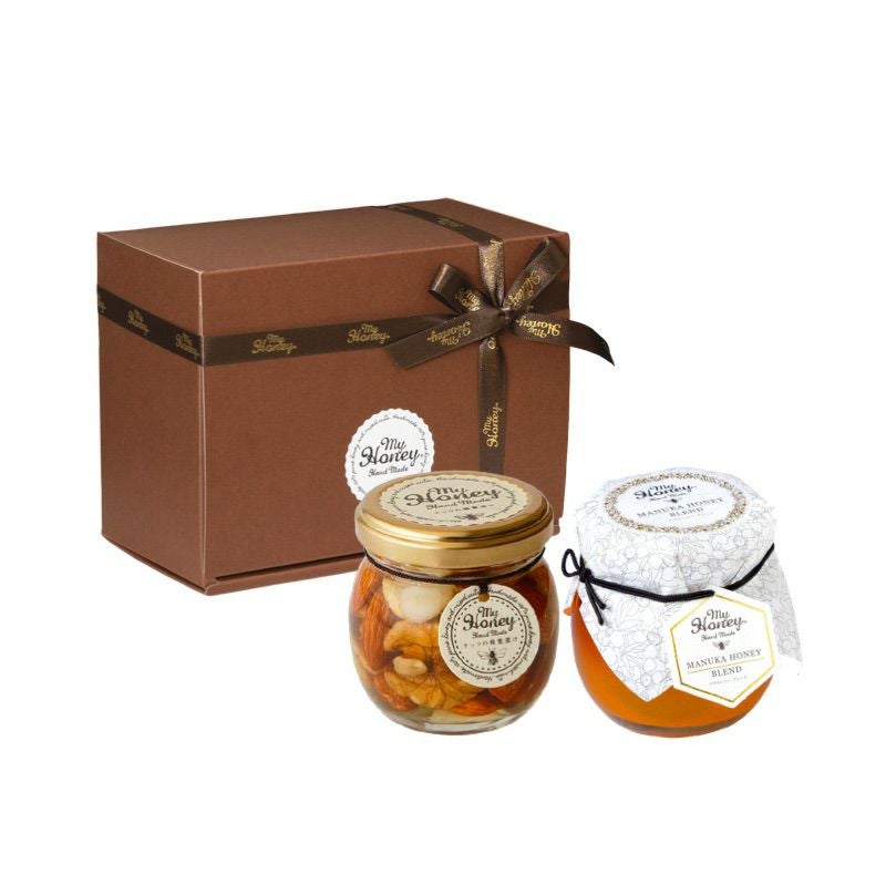 他の画像を見る 贈り物に最適なMYHONEYの生はちみつギフト ナッツの蜂蜜漬けM(90g) + ピーナッツハニーM(90g) / ブラウンギフトボックス(S) + MYHONEYロゴ入りリボン【当日出荷可能】 平日12時までのご注文で当日出荷 当店特別価格 ¥ 3,200 税込 詳細を見る お気に入りに登録する