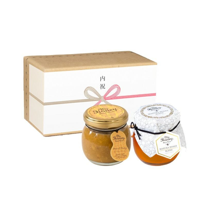 他の画像を見る 贈り物に最適なMYHONEYの生はちみつギフト マヌカハニーブレンド(90g)【MGO30+相当】× 2 / ナチュラルクラフトボックス(M) + 熨斗【当日出荷可能】 平日12時までのご注文で当日出荷 当店特別価格 ¥ 5,090 税込 詳細を見る お気に入りに登録する